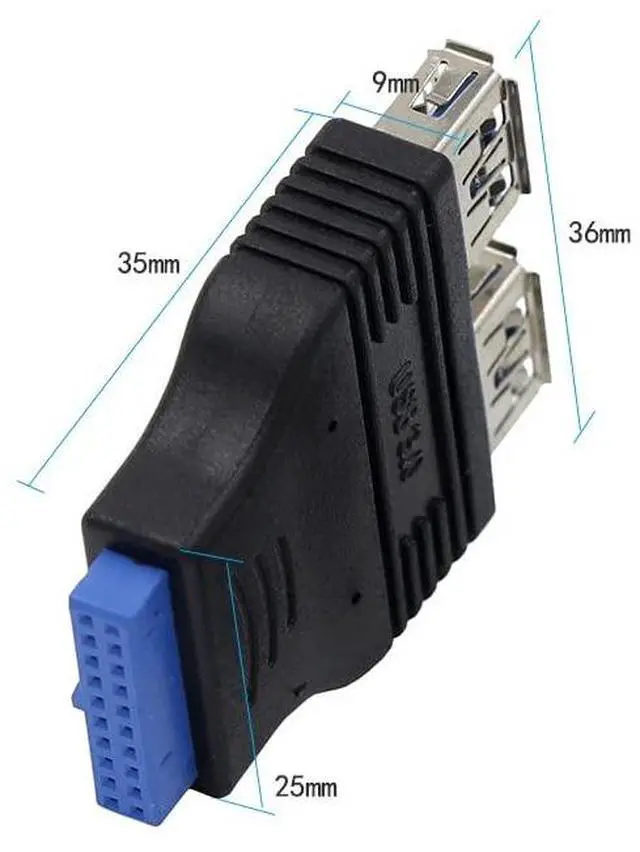 The USB 3.0 Splitter To 20 Pin Header Adapter can use the USB 3.0 type-A female convert USB3.0 (20pin Header) directly connected to the motherboard,with this adapter you have functioning front connectors to which you can quickly and easily connect USB sticks and other devices with a USB port.