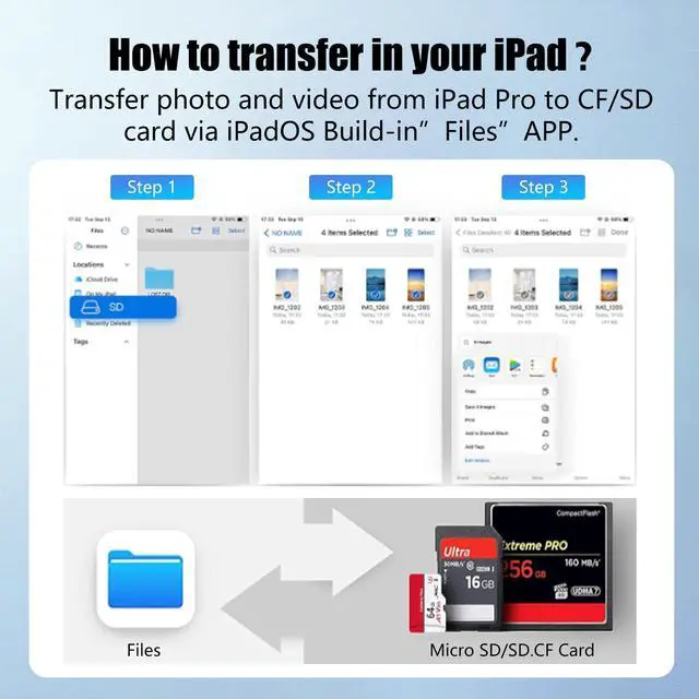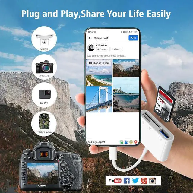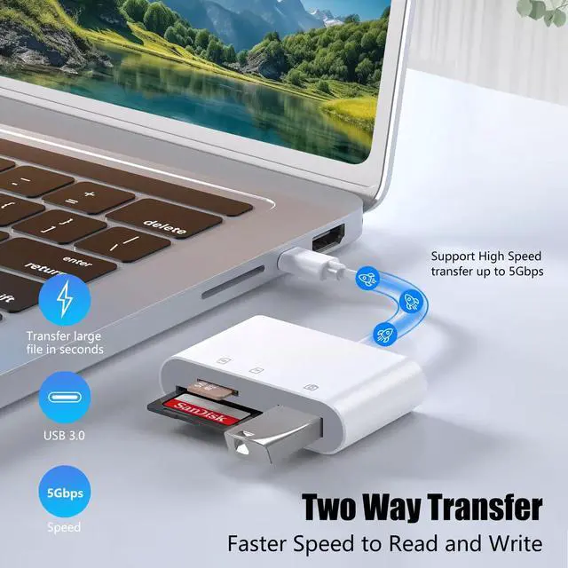 This SD card reader features a built-in USB-C cable for hassle-free connectivity. No apps, drivers, or power requiredjust plug it into your iPhone 15/16, iPad, or USB-C device to instantly transfer photos/videos. Its slim design wont block adjacent ports, making it the ultimate card reader for iPhone and tablet users.More than a memory card reader, this versatile tool doubles as a USB-C OTG hub. Connect SD/MicroSD cards, flash drives, keyboards, or hard drives directly to your device. Edit drone footage on your iPad Pro or backup phone files to an SD cardall through this SD card adapter.Designed for creators, this SD card reader USB-C works seamlessly with iPad Pro/Air, MacBook, Samsung Galaxy, and Google Pixel. Transfer RAW photos from your camera to iPhone 16 Pro or export 4K videos from iPad to SD cardsall via the native Files app.While this SD card adapter cant read SD/MicroSD cards at the same time, it uniquely supports parallel use of a memory card (SD or MicroSD) and USB accessories like mice or drives. Perfect for on-the-go multitasking with your USB-C laptop or tablet.Optimized for Apples ecosystem, this card reader for iPhone 15/16 series and USB-C iPads ensures two-way transfers. Save social media edits back to SD cards or archive MacBook projectsall with the speed and reliability of a memory card reader USB-C.