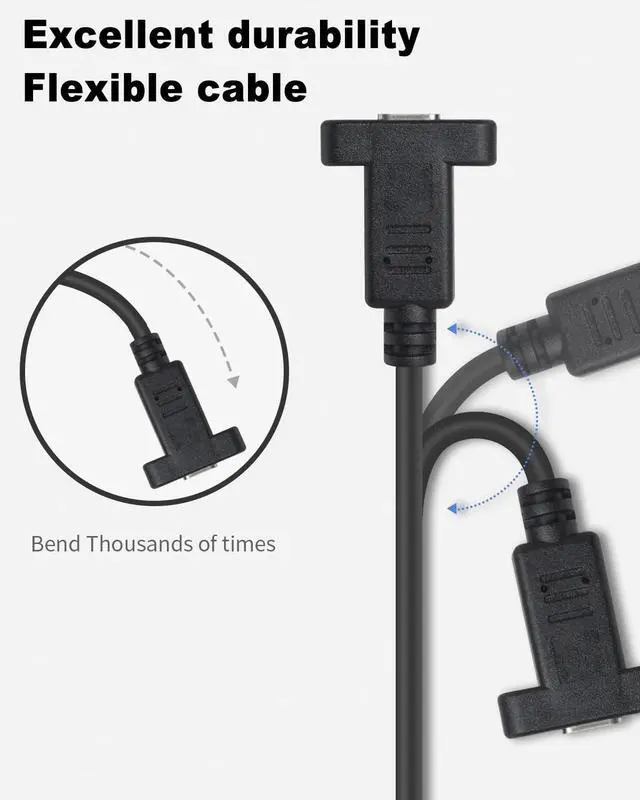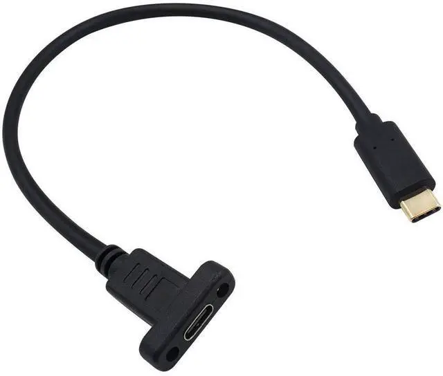 Vszerda USB 3.1 Type C Extension Cable 1ft, Short USB C Panel Mount Extension Cable, 10Gbps & 60W 3.1 Gen 2 USB C Screw Panel Mount Connector Support Charging & Data for PC, Mobile Phone