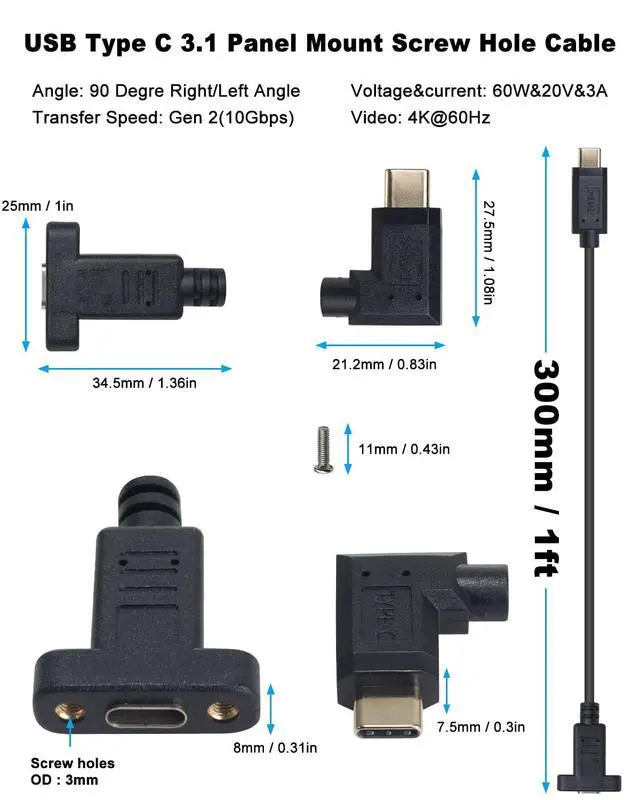 Right& Left Angled 90 Degree USB 3.1 Type C Male to Female Extension Cable with Panel Mount Screw, use to mount to the PCI bracket, helps you easily connect the devices with type C interface. it's easy to hook up and install and its just an extension/port so no need to install drivers;