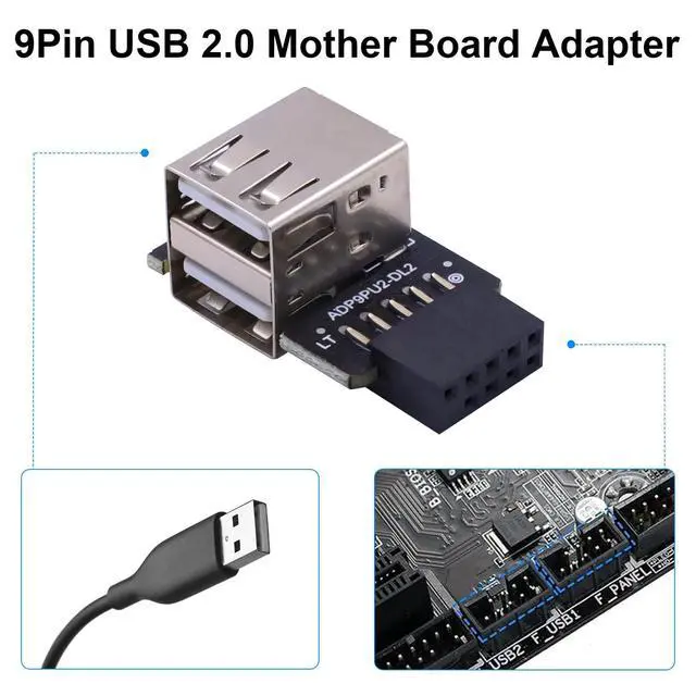 Function: Use this usb internal motherboard adapter to extende the USB 2.0 A Female Ports from PC USB 2.0 9Pin header.Compatible for Computer Motherboard Connector.