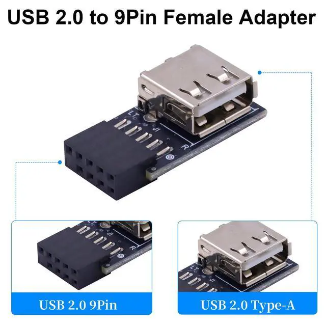 Use for: Connect devices designed to plug into 9 pin motherboard header connection to an standard USB 2.0 type A connector. It has a good solution for any application requiring internal USB 2.0 female port.