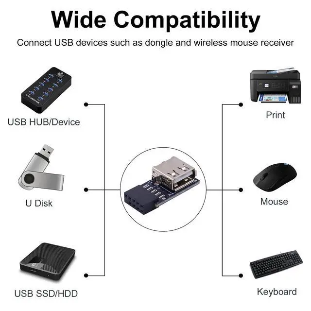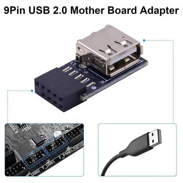 Function: Use this usb internal motherboard adapter to extende the USB 2.0 A Female Ports from PC USB 2.0 9Pin header.Support for Computer Motherboard Connector.