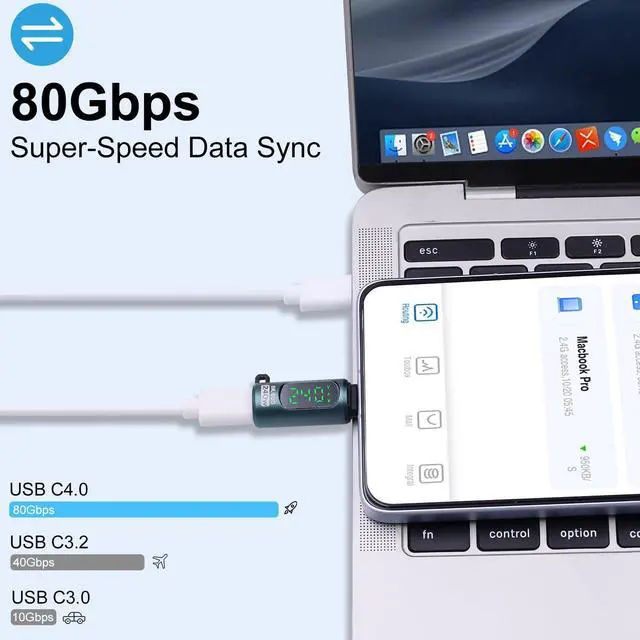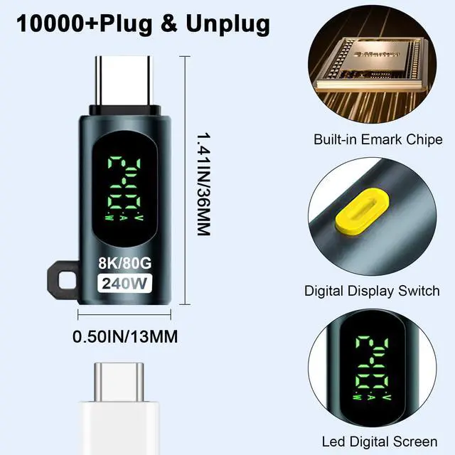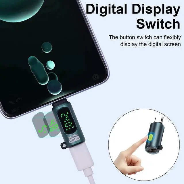 USB C Extender AdapterOur USB C extension adapter has an unique switch design that can freely and flexibly adjust the LED digital display screen. Convenient to see the real time voltage and current as you need. With the keychain hole to carry it easy in everywhere.