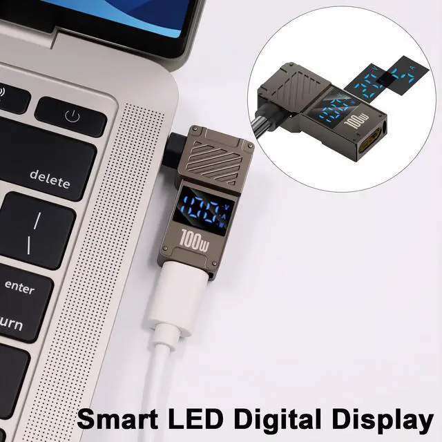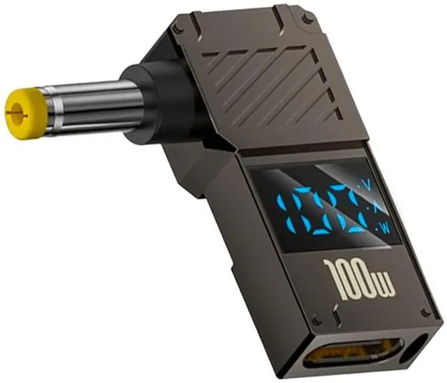 Vszerda DC 5.5x1.7mm Power Plug, USB C Female to DC 5.5x1.7mm Power Adapter, 90 Degree, LED Digital Display, 100W Output 20V 5A Charger Connector for Laptop,1-Pack