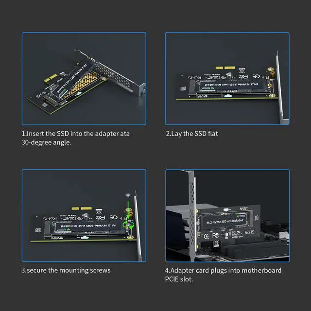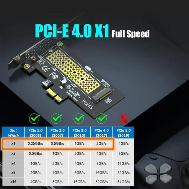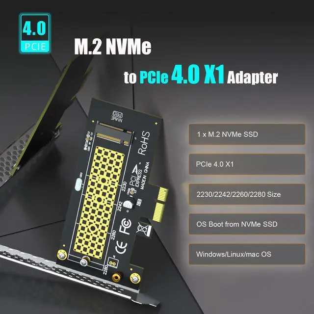 This adapter turns your motherboard's PCIE X1 slot into an M.2 Key M slot for M.2 NVMe SSD installation.