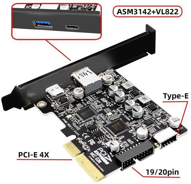 10Gbps Type-E USB 3.1 Front Socket & USB3.0 19Pin/20Pin & Type-A USB-C to PCI-E Express Card Adapter ASM3142 VL822