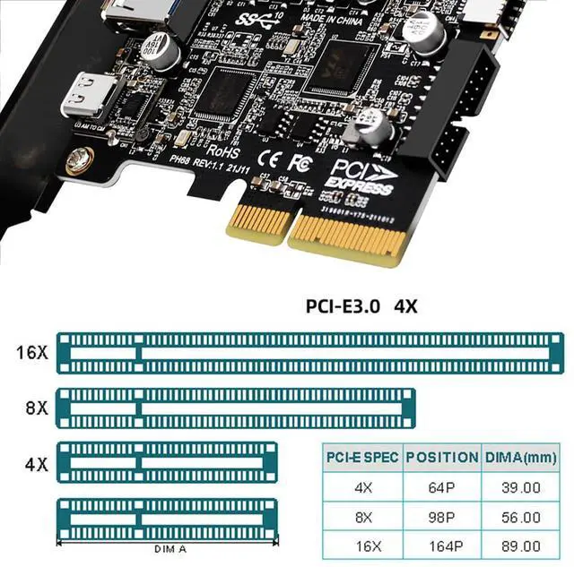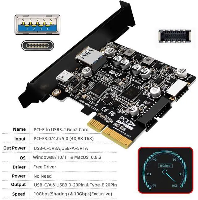 10Gbps Data transfer: Support 10Gbps data rating and 5V power. Compliant with USB Base Specification 3.1/3.0, Output USB3.0 interface and Type-C/Type-E interface. Compliant with USB 3.0 Super-Speed (10/5Gbps), USB 2.0 Hi-Speed (480Mbps), USB 1.1 Low-Speed (1.5Mbps).