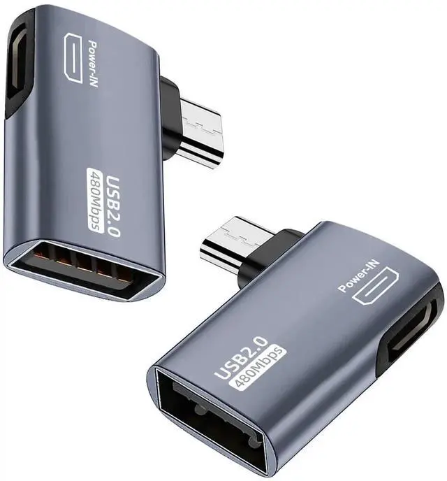 Vszerda 2 Pack OTG Cable Adapter for Fire TV Stick 4K, 90 Degree Left and Right Angle Powered Micro USB to USB OTG Adapter for Android Phone Tablet and More Host Devices with Micro USB (Grey)