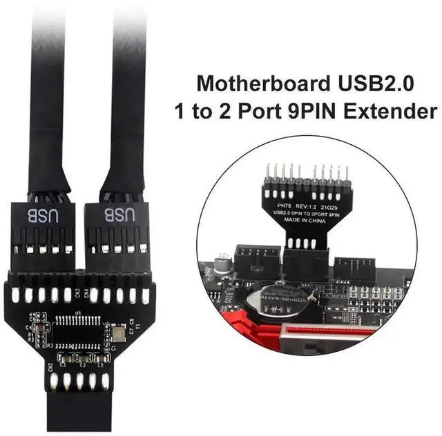Motherboard USB 2.0 9Pin Header Splitter USB 2.0 9 Pin to USB 3.0 19Pin Conversion Adapter Extension Cable Adapter for RGB Lamp Fan