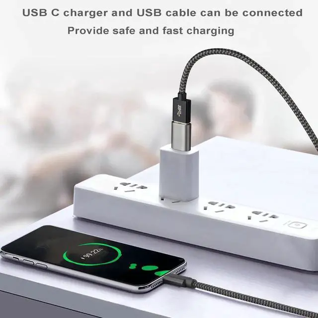 Port switcher for USB C male and USB A female. Enables more port compatibility for USB C and USB A devices. Easy data transfer, convenient charging, storage space, and expansion for more functions.