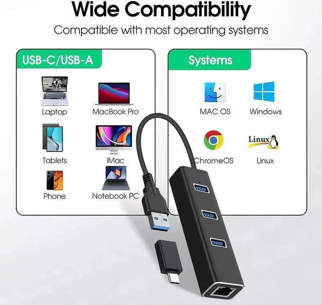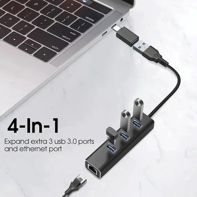 ![Alt view image 5 of 7 - 3 Ports USB 3.0 Hub with 1000M RJ45 Ethernet Adapter, [4 in 1] USB Hub Splitter for Laptop, Multiple USB Port Extender Hub, Aluminum USB to 1000Mbps Ethernet Adapter USB Expander Hub for Laptops](https://c1.neweggimages.com/productimage/nb640/B4D1D2602060QQ0VP66.jpg)