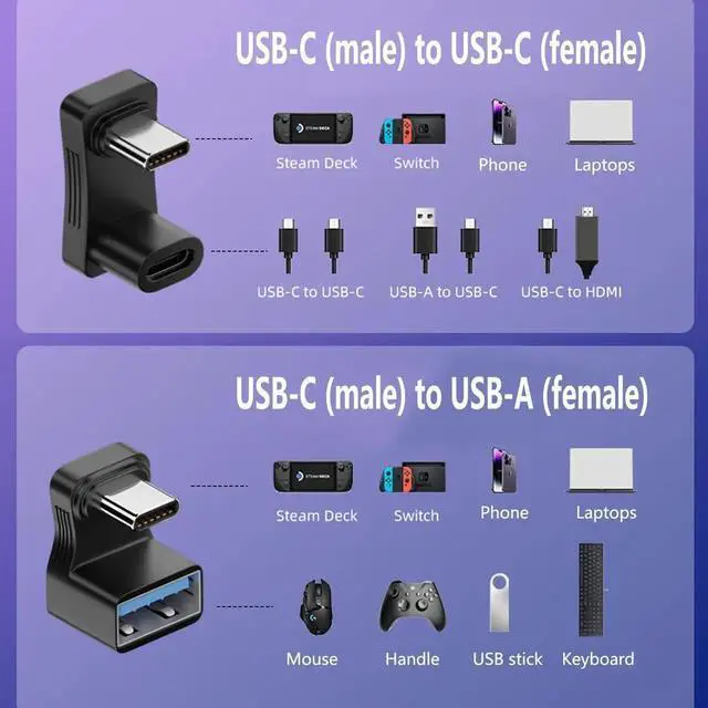 - [Small and convenient]This 180 degree USB C adapter has a small size and can be carried anywhere. Plug and play, easy to unplug, eliminating the hassle of replacing different cables and connecting inconvenient drivers.
