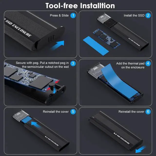 - [Ideal SSD Enclosure]It has the characteristics of compact and portable, this SSD Enclosure M.2 NVMe is good for people that on a trip or business, carry easily .You will get 1X M.2 SSD Enclosure, 1 X User Manual, 1X USB-C to USB-C Cable, 1X USB A to USB-C Cable. Note: NVME and SATA SSDs are not included