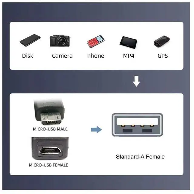 Micro USB 2.0 to Type-A Female OTG Host Adapter 90 Degree Angled with USB Power for Phone Tablet