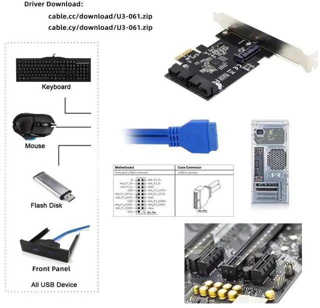 5Gbps 19Pin 20Pin USB 3.0 Front Panel Header to PCI-E 1X Express Card VL805 Adapter for Desktop Computer Motherboard