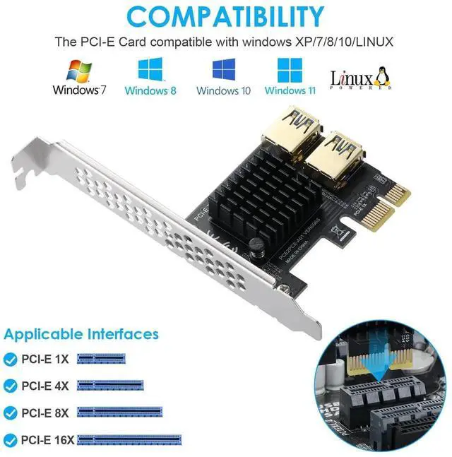 Bus interface: PCI-E x 1 (compatible with 4x / 8x / 16x / graphics card interface)