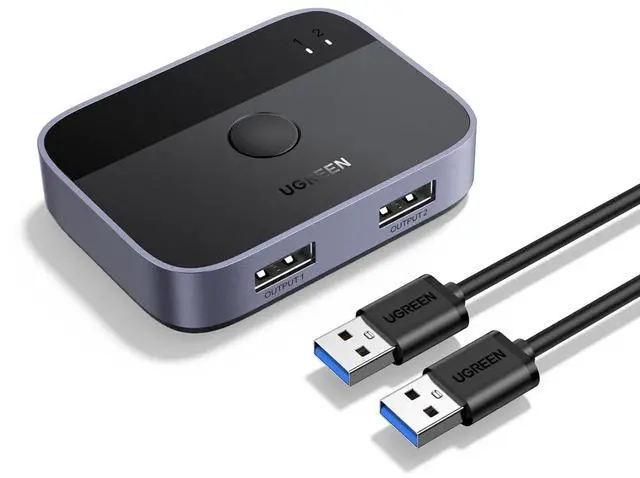 2 PCs Share Multiple Devices: UGREEN 2 in 2 out USB switch supports 2 computers sharing 2 USB devices like keyboards, mouses, printers, webcam and more. Switch freely between your work computer and personal laptop, boost your work efficiency.