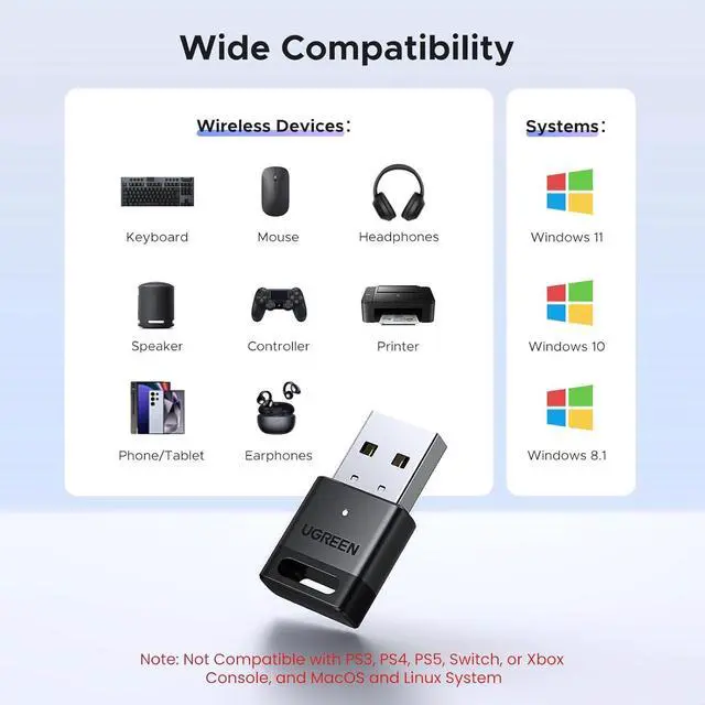 Plug and Play: Designed exclusively for Windows systems, this Bluetooth receiver requires no driver installation on Windows 11/10/8.1. It is not compatible with Windows 8/7, Linux, or macOS.