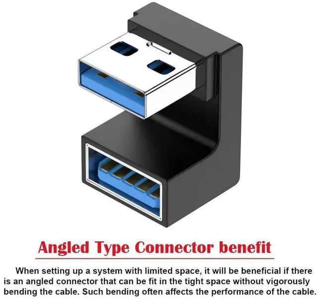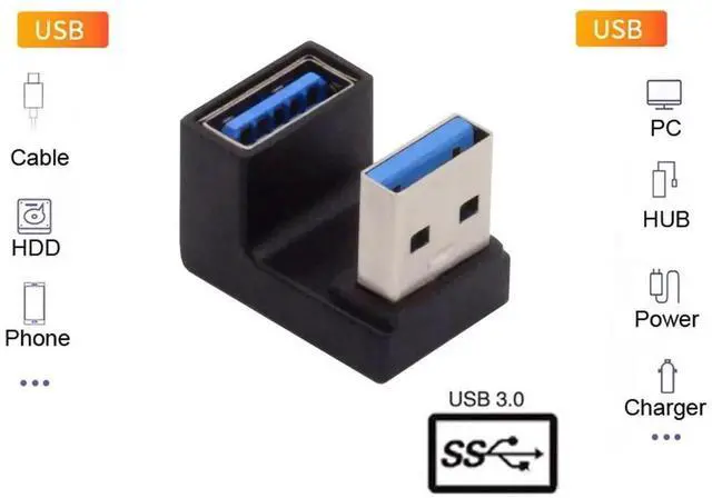 2. Angled USB 3.0 Adapter, Type A Male/Female,Support 10Gbps data transfer rating.