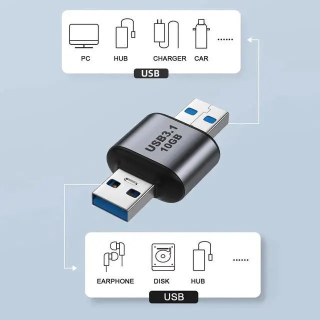 • Adapter USB 3.0/3.1 Type A Male to USB 3.0/3.1 A Male Data Adapter 10Gbps Extension for Laptop Desktop