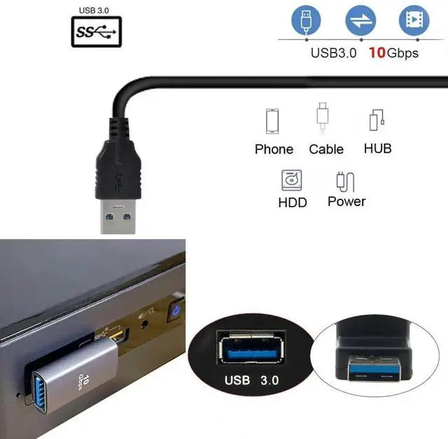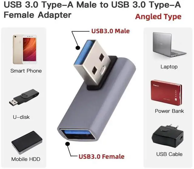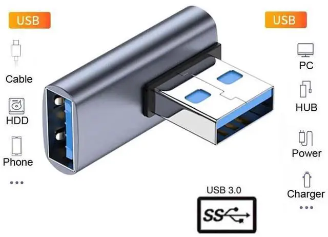 2. Angled USB 3.0 Adapter, Type A Male/Female,Support 10Gbps data transfer rating.