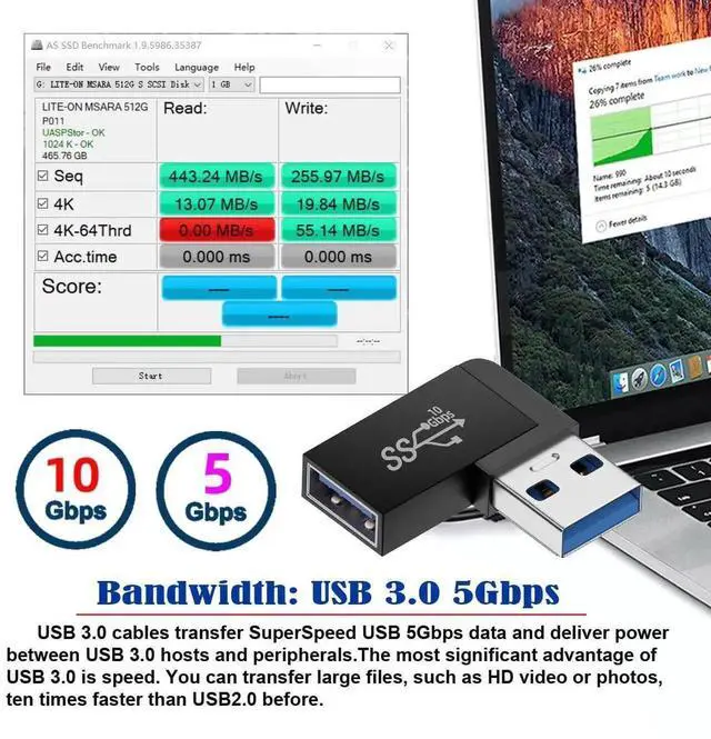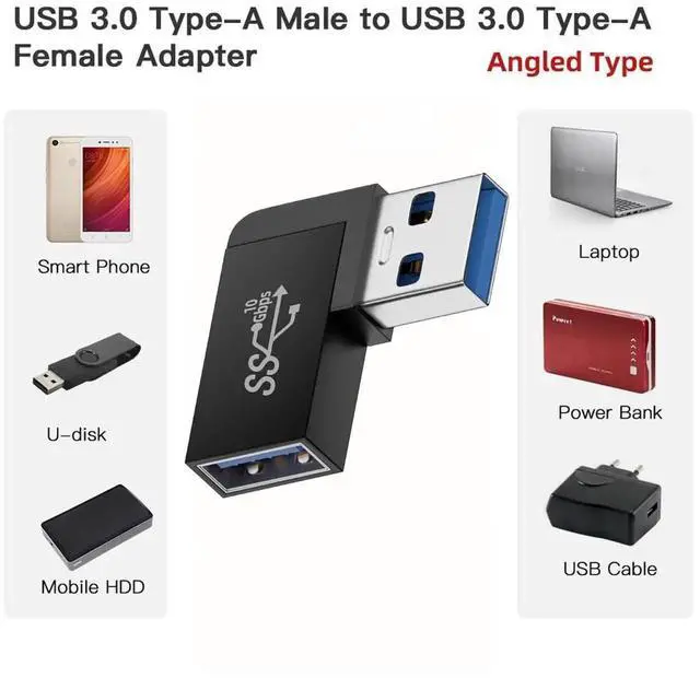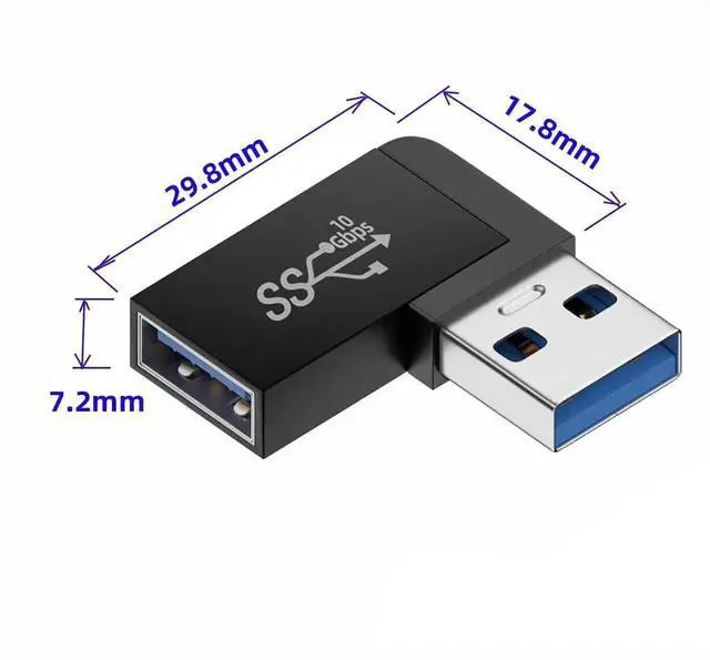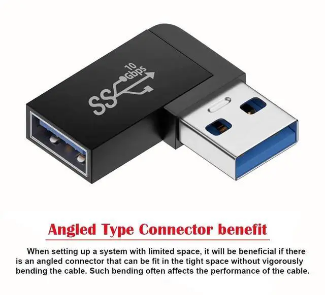 2. Angled USB 3.0 Adapter, Type A Male/Female,Support 10Gbps data transfer rating.