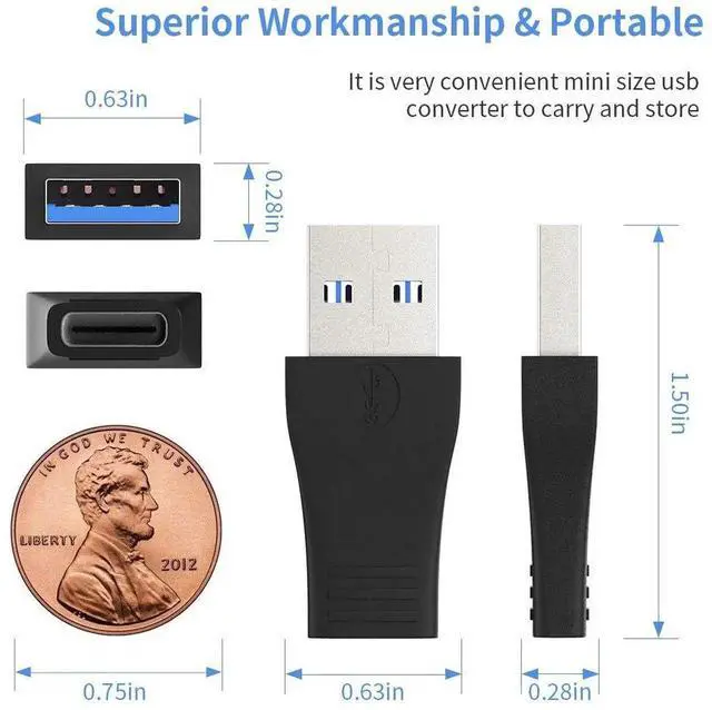 FUNCTION: Convert USB A male to type c female. Plug and play,user-friendly.