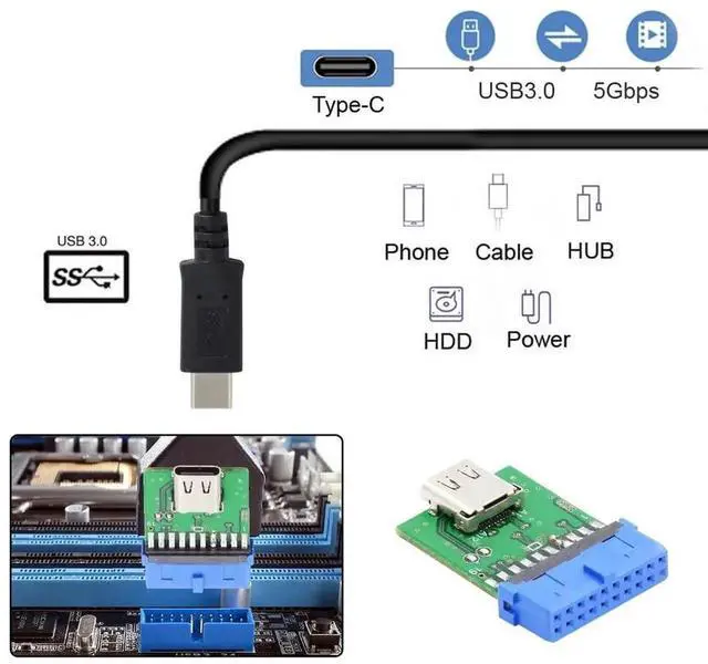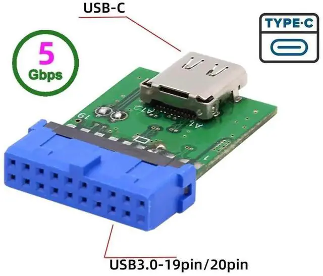 Single Port USB 3.1 Type C USB-C Female to USB 3.0 Motherboard 19pin 20pin Header Adapter PCBA 5Gbps