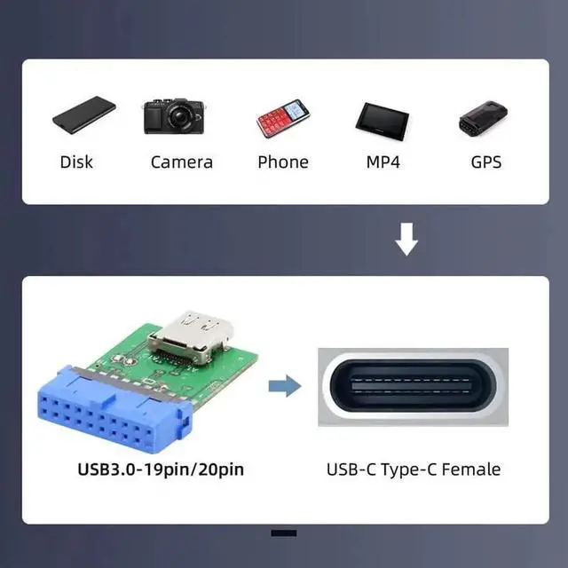 USB Splitter Convert motherboard USB 3.0 Female to usb type-c port. High-quality electronic components.