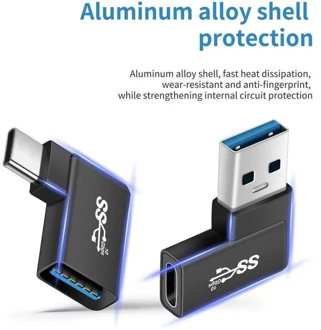 The USB-C to USB 3.0 OTG Female to USB A Male Adapter features an innovative 90-degree right-angle design for better cable management in certain situations, especially in tight spaces like cars, corners, and more.
