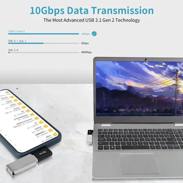 It is the ideal adapter for all USB compatibility issues, enabling you to connect USB flash drives, keyboards, mice, hubs, USB cables and other USB devices to smartphones and tablets or other USB-C port devices. With the USB-C to USB adapter, you can transfer data, sync and charge from USB devices and support up to 10 Gbps (USB 3.1 Gen 2) transfer data.