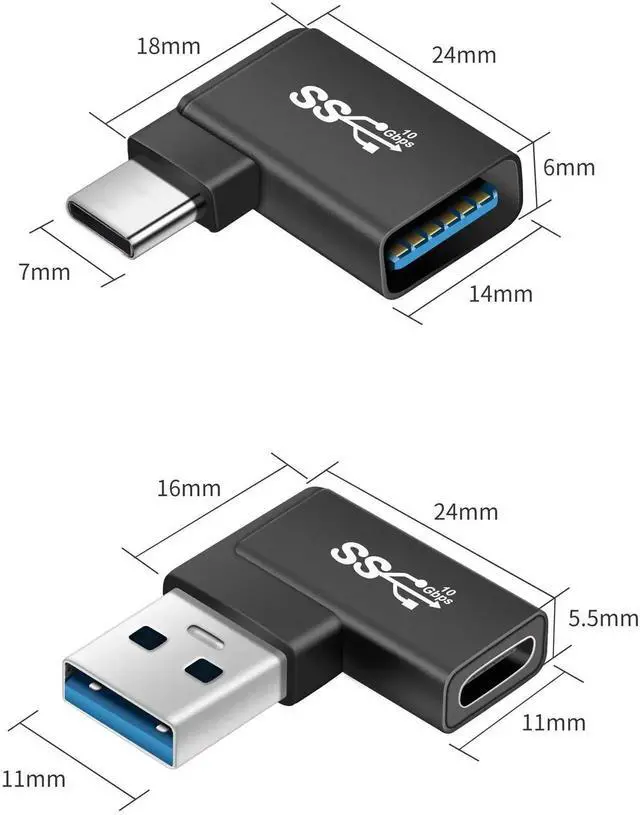 90 Degree Right Angle USB C to USB 3.0 Adapter (2 Pack)