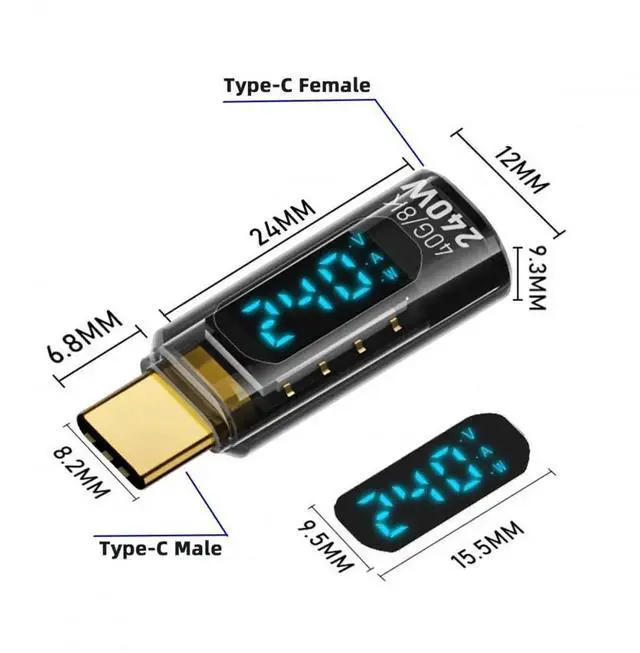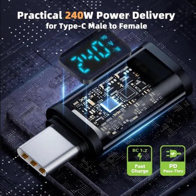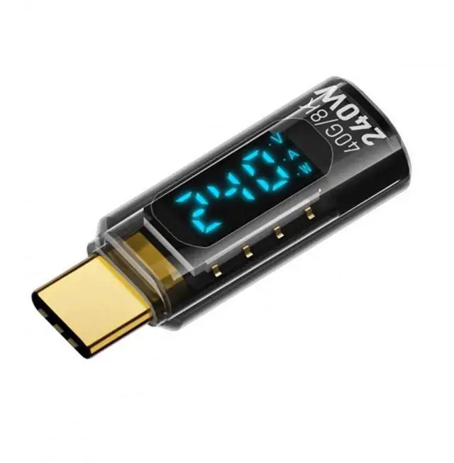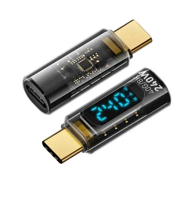 Vszerda Adapter 240W Type-C Smart LED Display USB4 Male to Female Extension Adapter USB4.0 40Gbps Current Voltage Monitoring Tester Detector