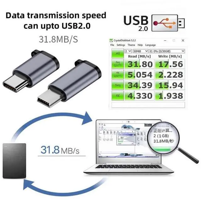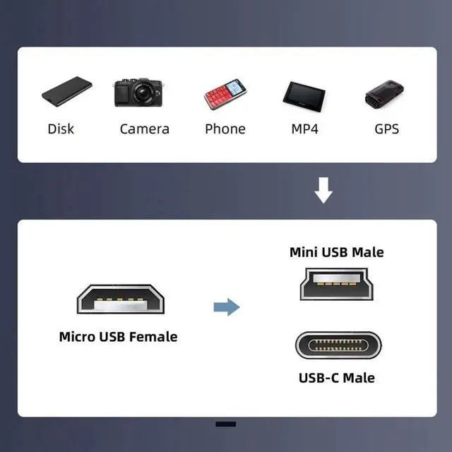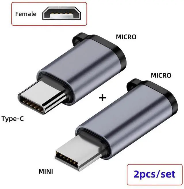 USB 2.0 Connector Micro USB to Mini USB USB C Data Power Adapter 480Mbps.