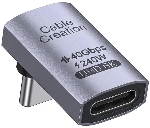 Right Angle USB C Adapter, CableCreation USB C Male to Female 90 Degree Adapter 40Gbps 240W Compatible with Steam Deck, ROG Ally, Switch, Notebook, PC, Tablet, Phone and More