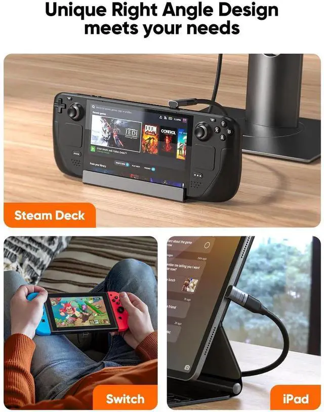 - Wide Compatibility: This design is mainly used for game devices, such as Steam Deck, Nintendo Switch, Oculus Quest, VR, but it also applies to USB4, Thunderbolt 4, Thunderbolt 3 and other USB C devices, such as Macbook Pro/Air, iPad, PC, Laptop, Tablet, Mobile Phone