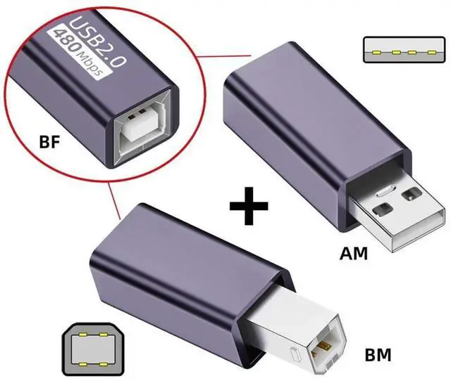 The package included 2pcs adapter. One Side is Female USB B Type,The Other Side is USB B male or A male.