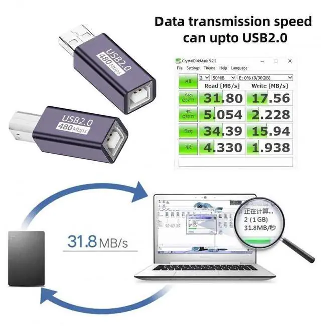USB 2.0 Printer Cable Provides a high speed of 480 Mbps, standard 2.0 connector provides excellent electrical conductivity, and high-speed transmission data is fast and accurate.