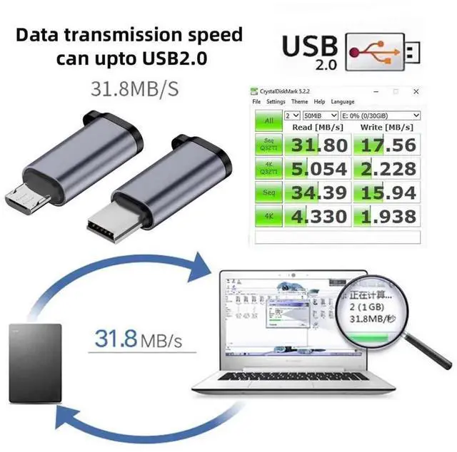 The adapter only transfer the usb 2.0 data and power. It can convert the Type-C port to Mini/Micro USB port.