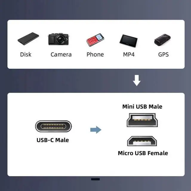 USB 2.0 Connector USB C to Micro USB Mini USB Data Power Adapter 480Mbps.