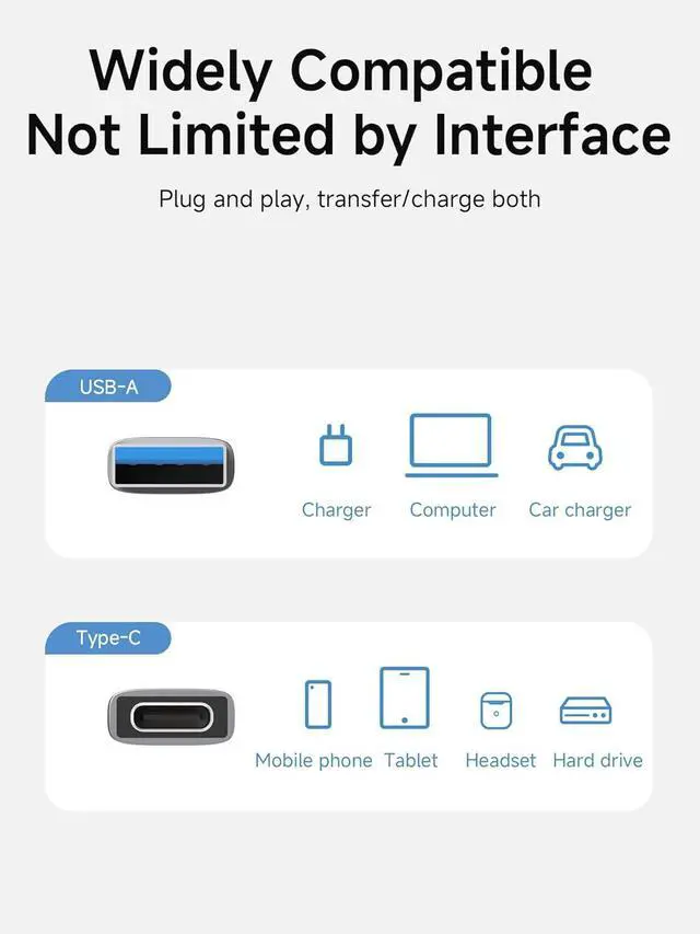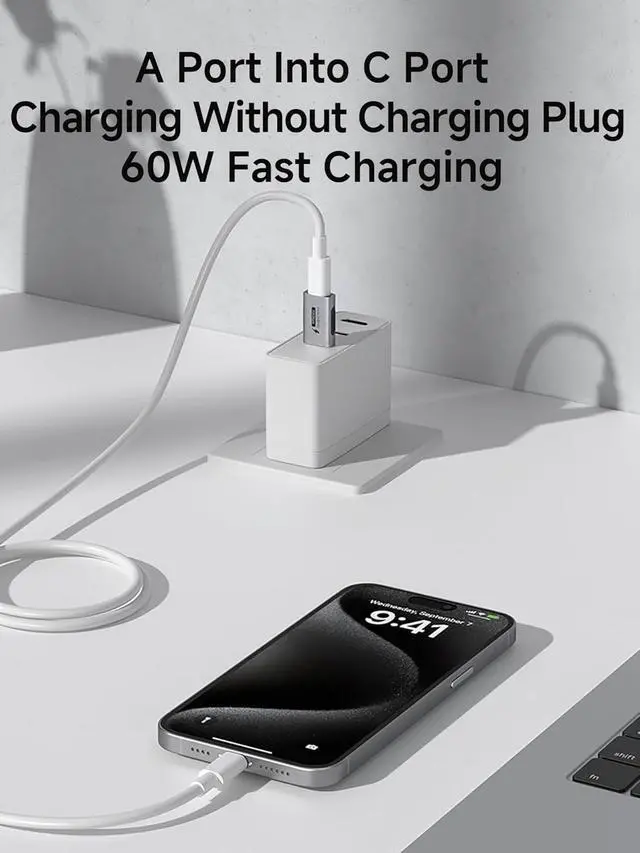 60W Fast Charging: USB-A into USB-C port, charging without changing plug. Slove the charging embarrassment of only USB-A port, no need to change the plug