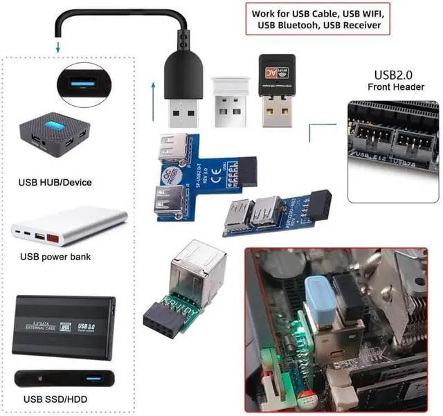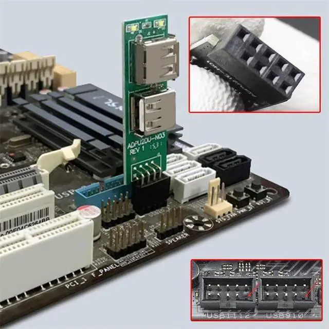You can convert the 9pin motherboard internal port to usb 2.0 device. Used to connect USB cables or adapter in tight fit applications.