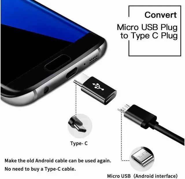 Description: Ideal Connection between Micro USB Device and USB-C Cable Micro USB to USB-C adapter easily turns your new USB-C devices with an extra Micro USB port, enabling you to reuse your standard Micro USB cable for charging and syncing. Save your money and time. This C Micro USB adapter supports fast charging at maximum 2.4 amp. Change Your Old Micro USB OTG Cable into USB C OTG Cord This Micro USB to USB C adapter support OTG, by which you could easily reuse your micro usb 2.0 otg cable connecting to Type C smartphones.