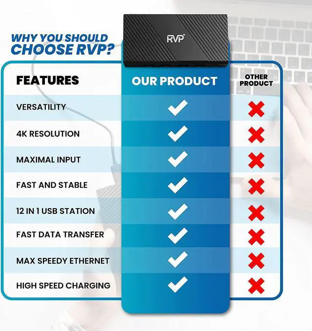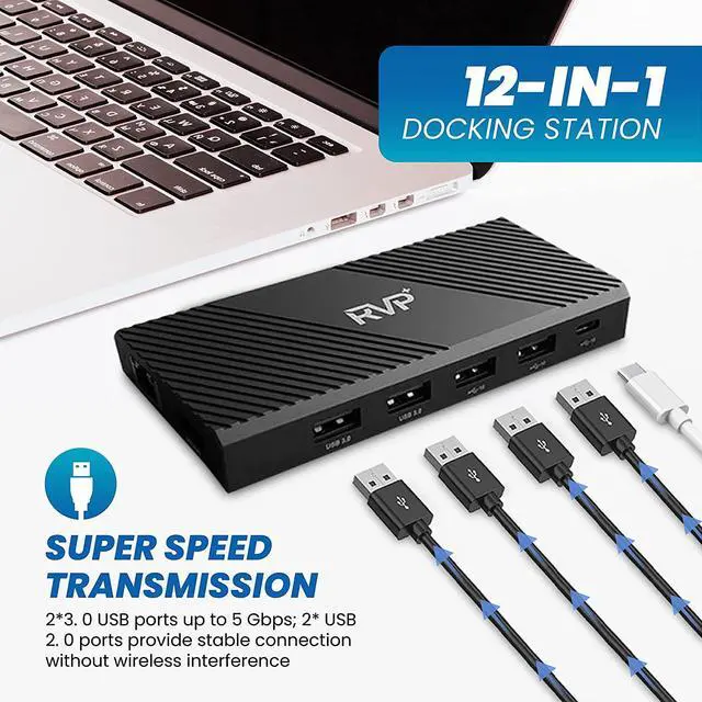 This ItemRVP+ Docking Station 3 Monitors, 12-in-1, Triple Display-4K HDMI Dual Monitors & VGA, 5Gbps USB-C/A Data Transfer, USB 3.0, 100W Laptop-Charging, Gigabit Ethernet, Audio, SD/TF Dongle (RVP-MCY93)RecommendationsRVP+ USB C Docking Station 3 Monitors, 13-in-1, Triple Display-4K HDMI & DisplayPort Dual Monitors, 5Gbps USB-C/A Data Transfer, 100W Laptop-Charging, Gigabit Ethernet, Audio (RVP-082321) RVP+ USB C Docking Station 3 Monitors, 14-in-1, 10Gbps USB-C, 5Gbps USB 3.0, 85W Laptop-Charging, PD 18W, Triple Display-4K HDMI Dual Monitors & DisplayPort, Gigabit Ethernet, Audio, TF/SD 3.0 (RVP-G8) USB C Docking Station Dual Monitor 10 in 1, USB-C Hub to HDMI VGA Adapter with 1Gbps Ethernet 100W Charging, USB C Hub to USB, 3.5 Audio, Card Reader Compatible for Dell/MacBook/Surface Laptops Plugable USB 3.0 Universal Laptop Docking Station Dual HDMI Monitor for Windows and Mac, USB 3.0 or USB-C, (Dual
