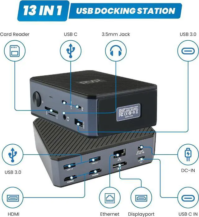 • 4K HDMI(×2),85W laptop-charging USB-C port, PD 18W10 Gbps USB-C data port, USB 3.0(×4), 4K DisplayPort, SD/TF 3.0 card slot, Gigabit Ethernet, 3.5 mm AUX, DC Input