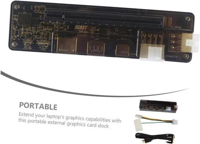 Graphics Card Adapter Take your laptop gaming experience to the next level with this portable graphics card dock.Laptop Video Card Dock With a maximum power output of 220W (8Pin interface) and compatibility with multiple computing systems, this dock is for gamers and professionals alike.Notebook Graphics Docking Station With multiple input interfaces and PCI-E interface , this dock allows you to easily expand your laptop's graphics capabilities
