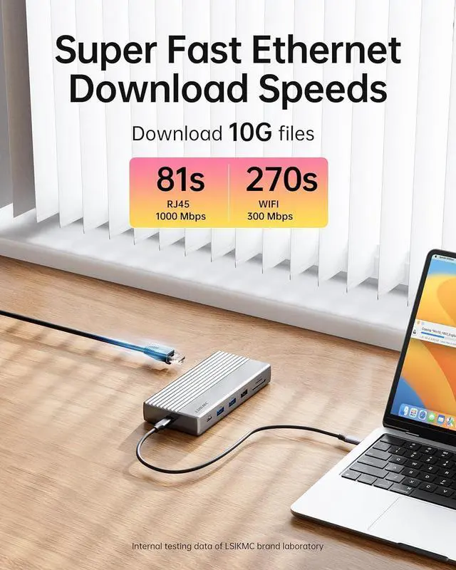 100W USB-C Charging: Enhanced docking station features 100W PD capability, allowing connection to a 100W charger via the C port. It delivers up to 87W of stable power to laptops and sustains charging even when an external monitor is connected. This USB C dock, also referred to as a Type C adapter, is optimized for data transfer and peripheral connectivity, boosting both work efficiency and entertainment experiences.