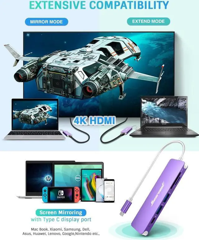 Experience 4K Lifelike images and videos in immersive with Hiearcool USB C Hub.