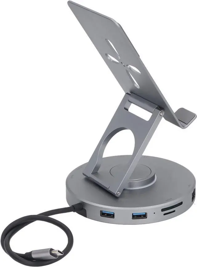 360 Degree Rotation Design: This USB C HUB stand supports 360 degree swivel folding to provide you with a viewing angle. Whether you are working on a project, watching your favorite show, or video chatting with friends and family, you can adjust the stand effortlessly.